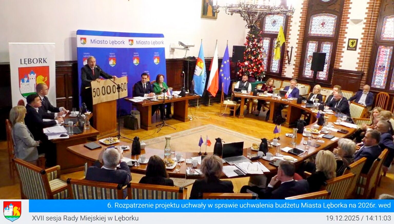 Podczas ostatniej sesji Rady Miejskiej w Lęborku radny Zbigniew Rudyk zamanifestował swoje niezadowolenie z propozycji radnych KO, domagających się m.in. budowy zachodniej obwodnicy Lęborka. Radny przygotował kartonik z namalowaną kwotą – 50 mln zł, którą w trakcie przemowy poprawił na 60 mln zł, bo na tyle szacuje inwestycyjne pomysły. – Blokujecie pieniądze, bo nie jesteście przy korycie – zarzucał opozycji radny Rudyk.
