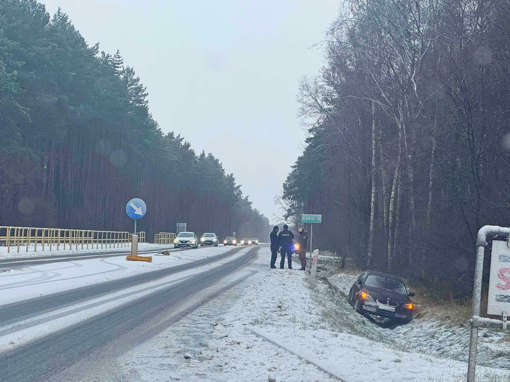 Kierowca BMW nie dostosował prędkości do warunków panujących na drodze i wjechał do rowu w Steknicy na DW214. Na szczęście nic mu się nie stało. Policjanci apelują o ostrożność za kierownicą.