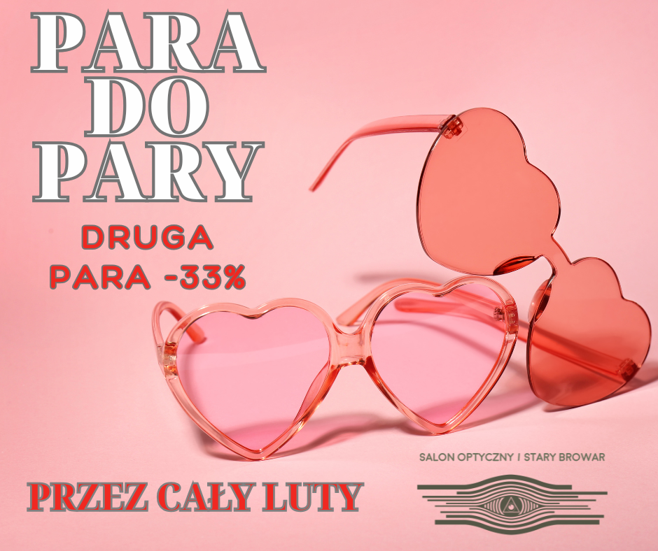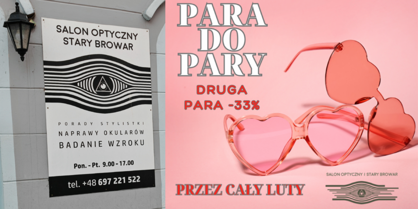 Głównym punktem walentynkowej promocji w salonie w Starym Browarze jest hasło „Okulary do pary”. Każdy klient, który zdecyduje się na zakup, otrzyma 33% zniżki na drugą parę okularów. Co istotne, promocja nie musi dotyczyć dwóch różnych osób – to idealna okazja, aby sprawić sobie drugi komplet, na przykład okulary do czytania, do pracy przy komputerze lub korekcyjne okulary przeciwsłoneczne