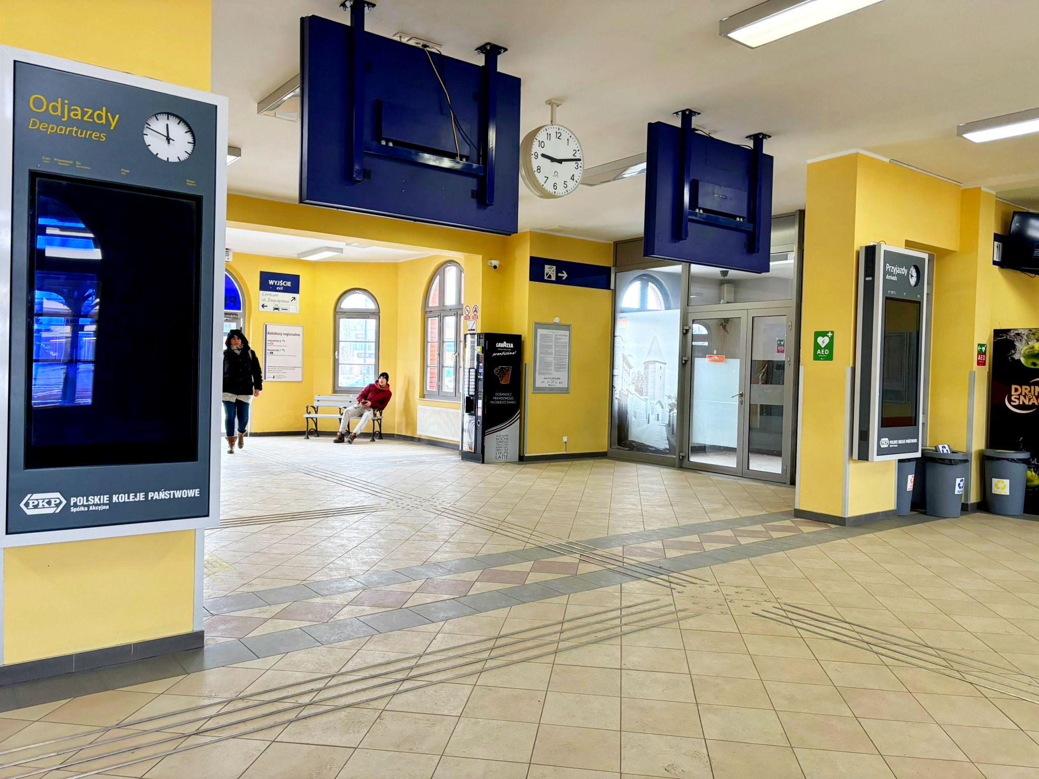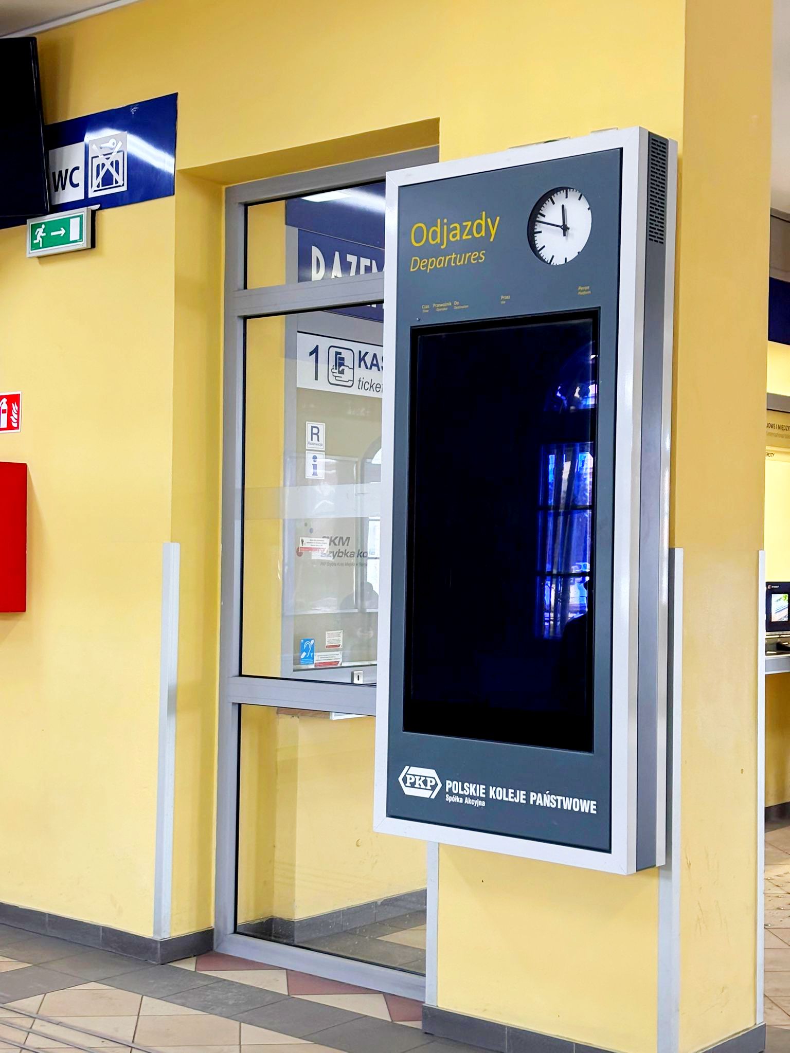 Wyświetlacze nie działają już od dłuższego czasu. Dotyczy to zarówno dwóch wiszących i stojących. Usterka mocno irytuje i stresuje podróżnych oczekujących na swój pociąg w holu dworca. Utrudnia też pracę kasjerce, która każdego dnia oprócz sprzedaży biletów musi odpowiadać na powtarzające się pytania podróżnych „dlaczego nie działają ekrany?”.