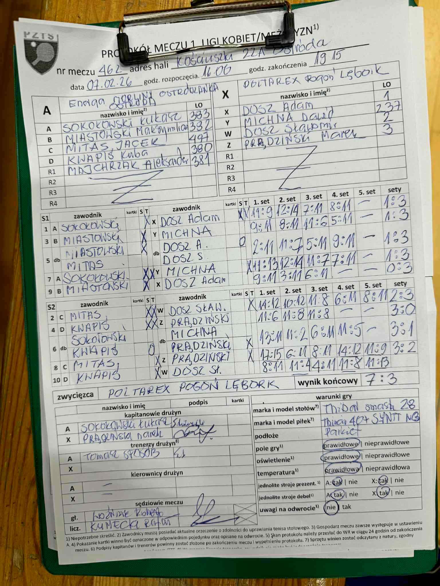 – Cenne zwycięstwo w Ostródzie! Wygrywamy 7:3 na trudnym terenie w Ostródzie i wracamy do Lęborka z dwoma punktami. Wygrana tym bardziej ważna, bo mierzyliśmy się z liderem tabeli, zespołem naprawdę mocnym i wymagającym. Dla nas to kolejne potwierdzenie dobrej formy w rundzie rewanżowej. Umacniamy swoją pozycję – napisali przedstawiciele klubu na swoim faebookowym profilu.