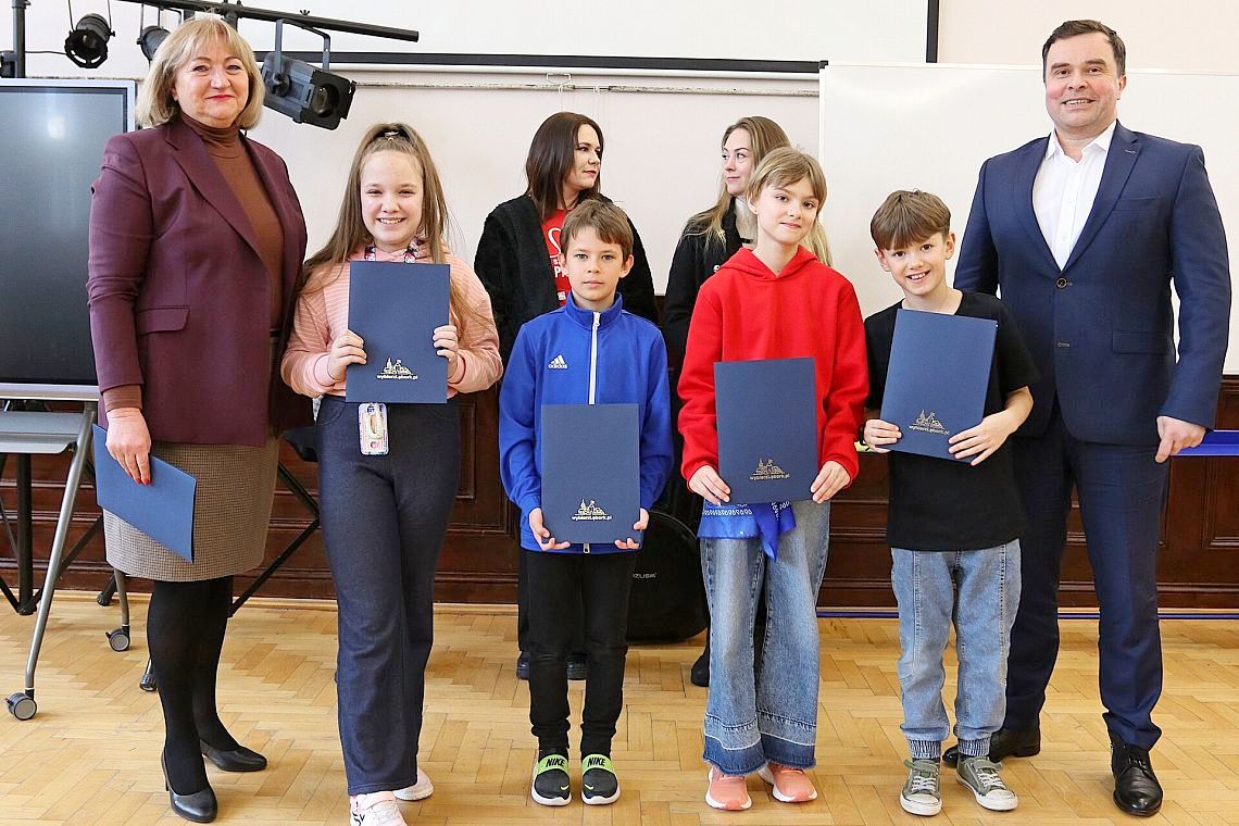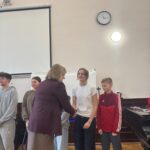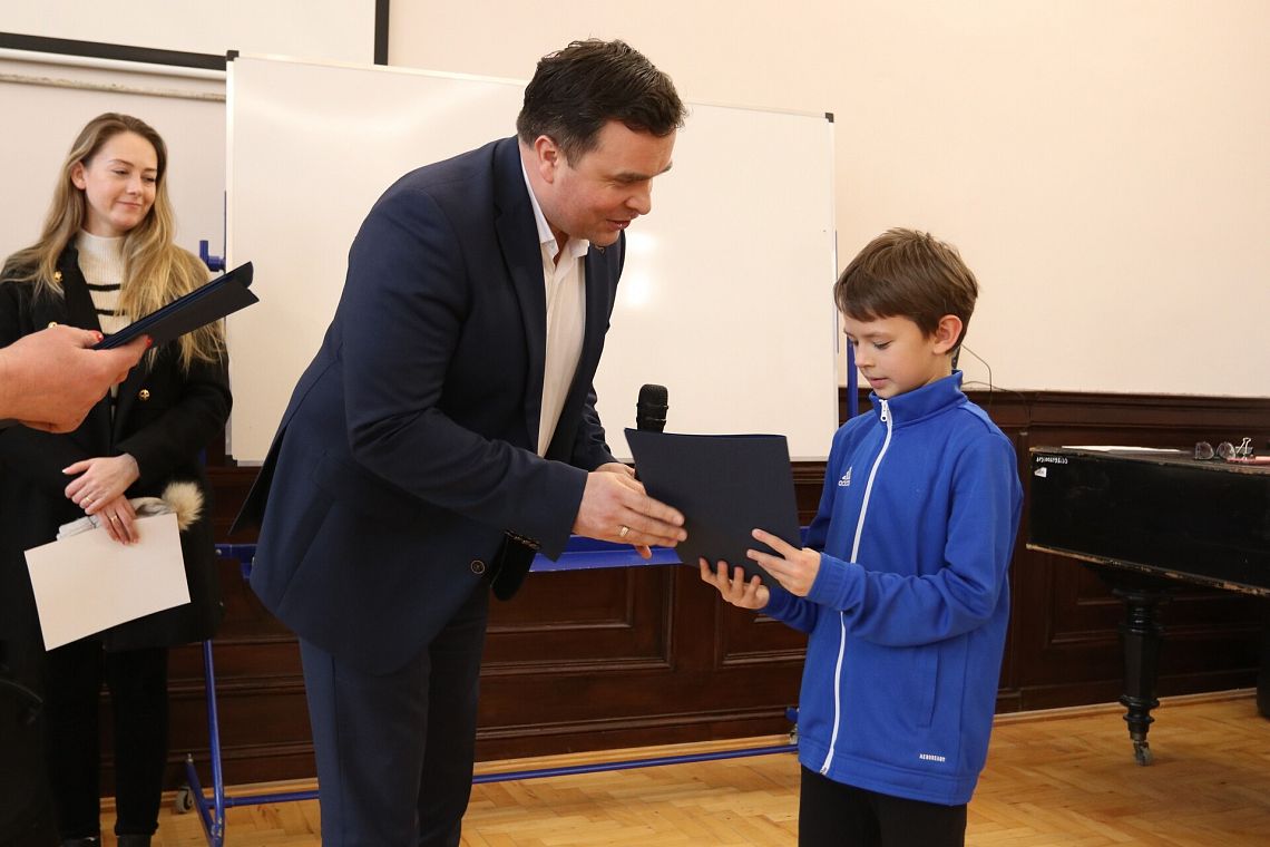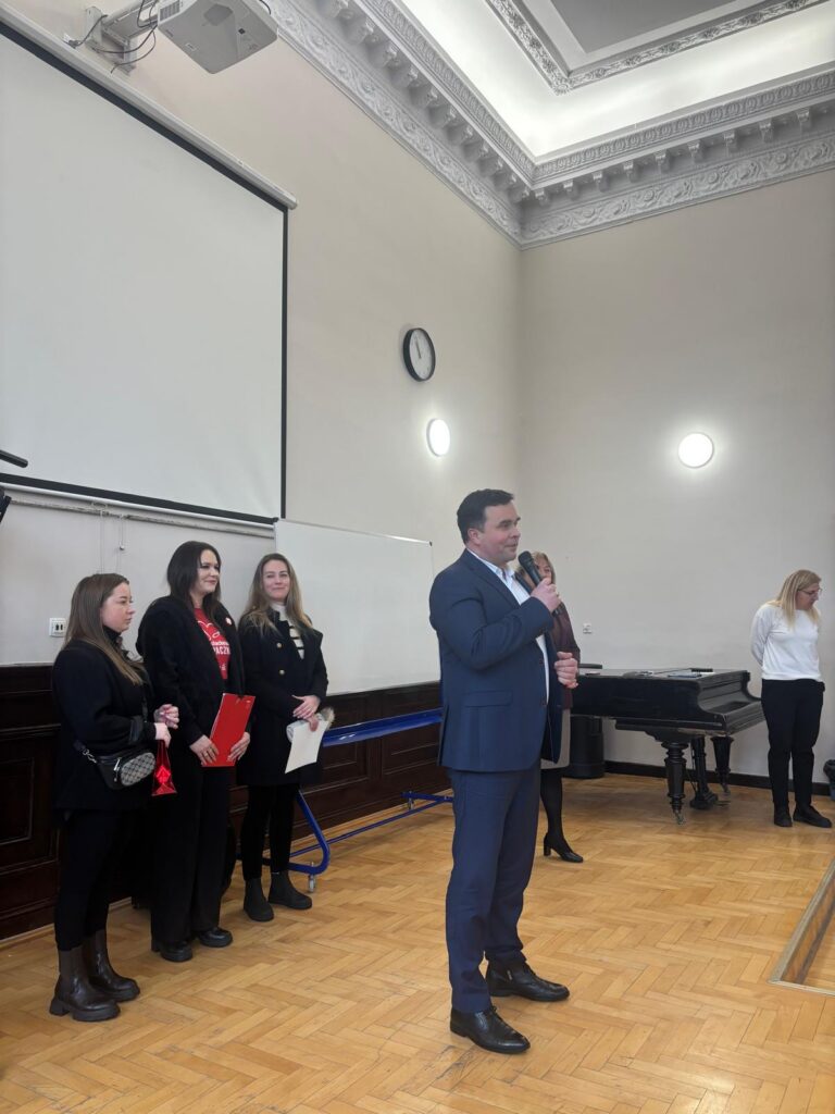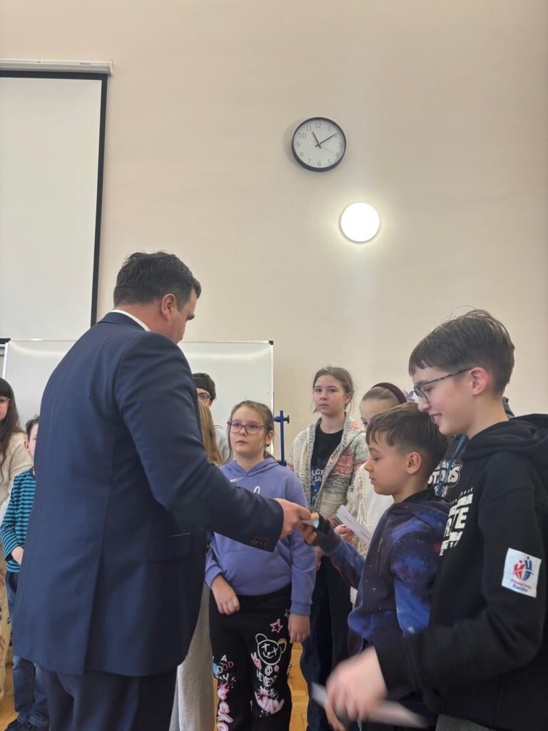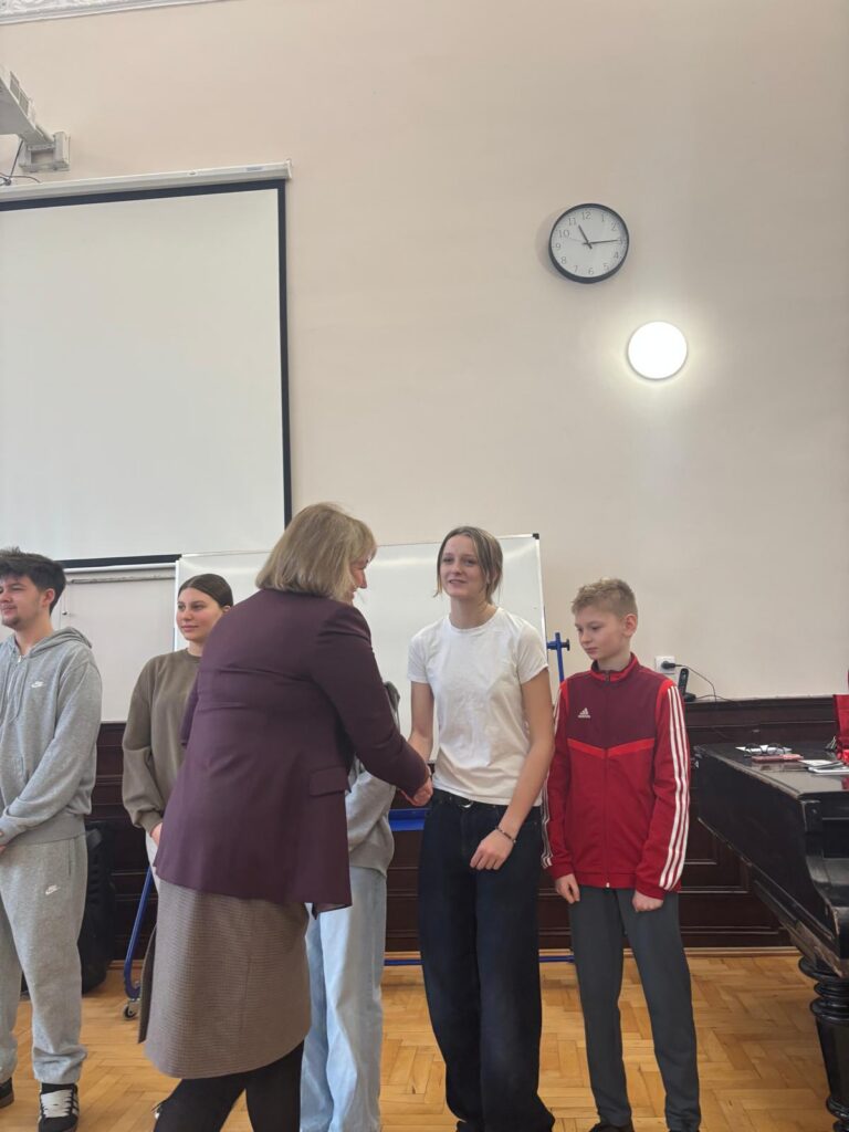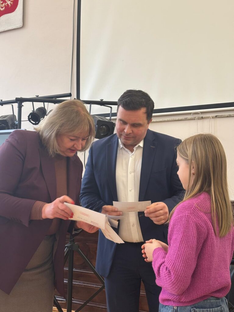 Odbyło się też wręczenie wyróżnionym uczniom stypendiów naukowych i sportowych. Następnie wszyscy uczniowie, którzy otrzymali średnią na koniec pierwszego okresu nauki w roku szkolnym 2025/2026 od 5,0 i wyżej otrzymali vouchery na wyjazd dla najlepszych uczniów szkoły. W sumie rozdano 35 voucherów.