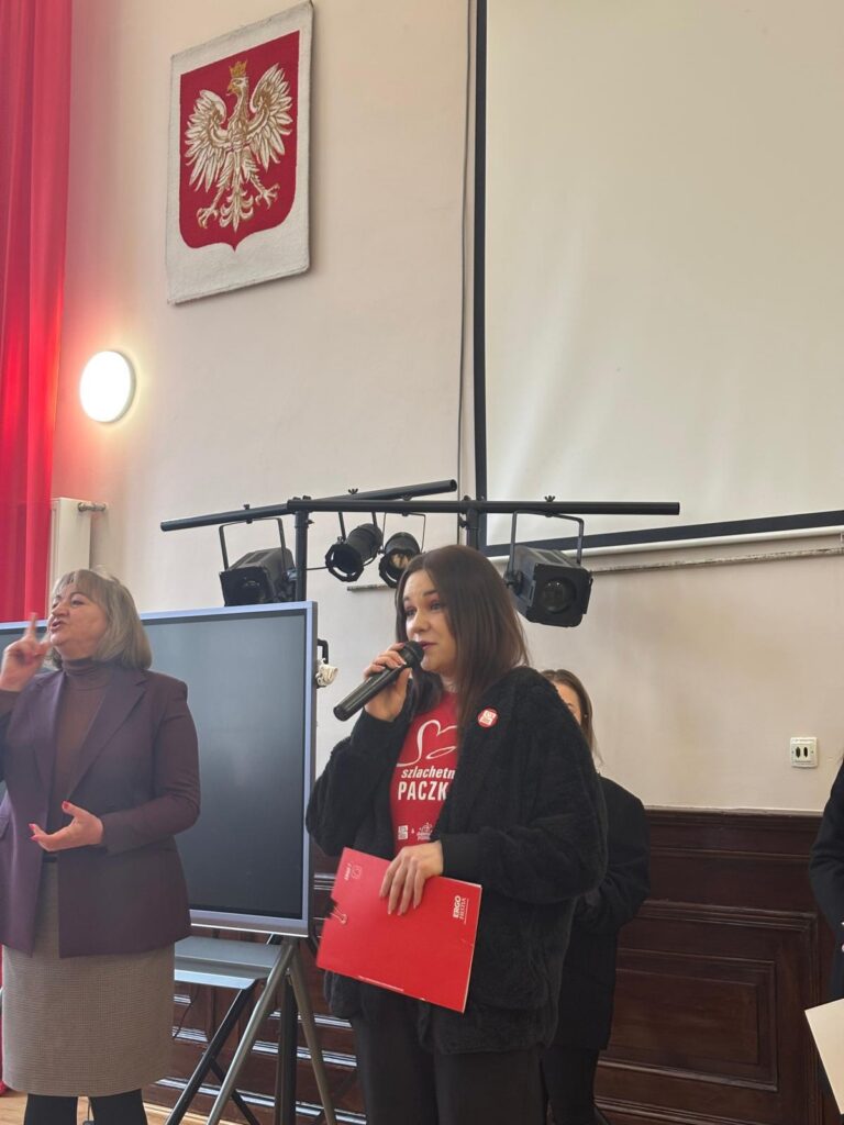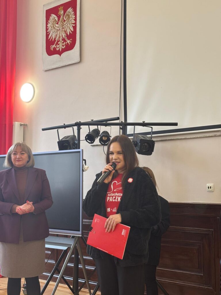W uroczystości uczestniczyły też koordynatorki akcji Szlachetna Paczka, które wręczyły na ręce dyrektor podziękowanie dla społeczności szkolnej za zaangażowanie i pomoc dwóm rodzinom, podopiecznym Szlachetnej Paczki.