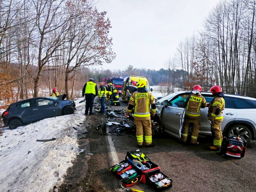 Do zdarzenia doszło w piątek, 27 lutego, około godziny 11:10. Ze wstępnych ustaleń policjantów wynika, że jadący w stronę Główczyc 42-letni kierujący Skodą zderzył się czołowo z jadącą z przeciwka 66-letnią kierującą Renaultem.