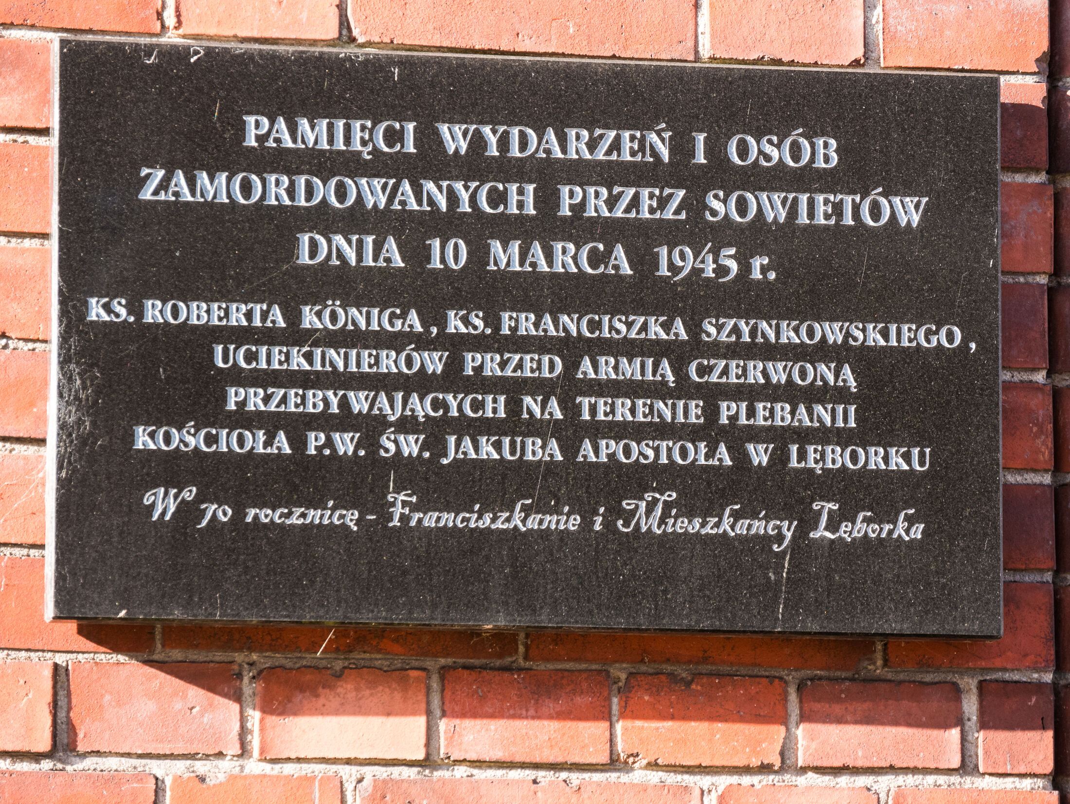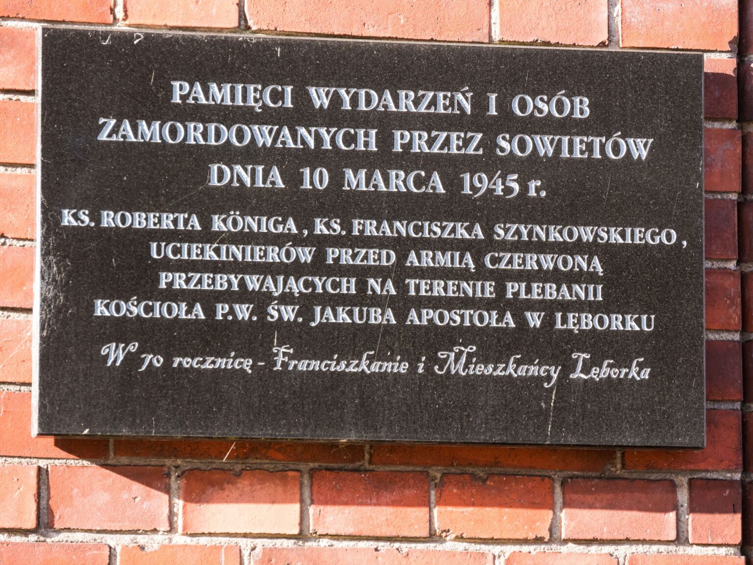 We wtorek, 10 marca, w Lęborku odbyły się uroczystości upamiętniające 81. rocznicę mordu dokonanego przez żołnierzy Armii Czerwonej na plebanii kościoła św. Jakuba Apostoła w dniu ich wejścia do miasta w 1945 roku. W wyniku tej zbrodni życie stracili księża oraz cywile szukający schronienia przed Sowietami.