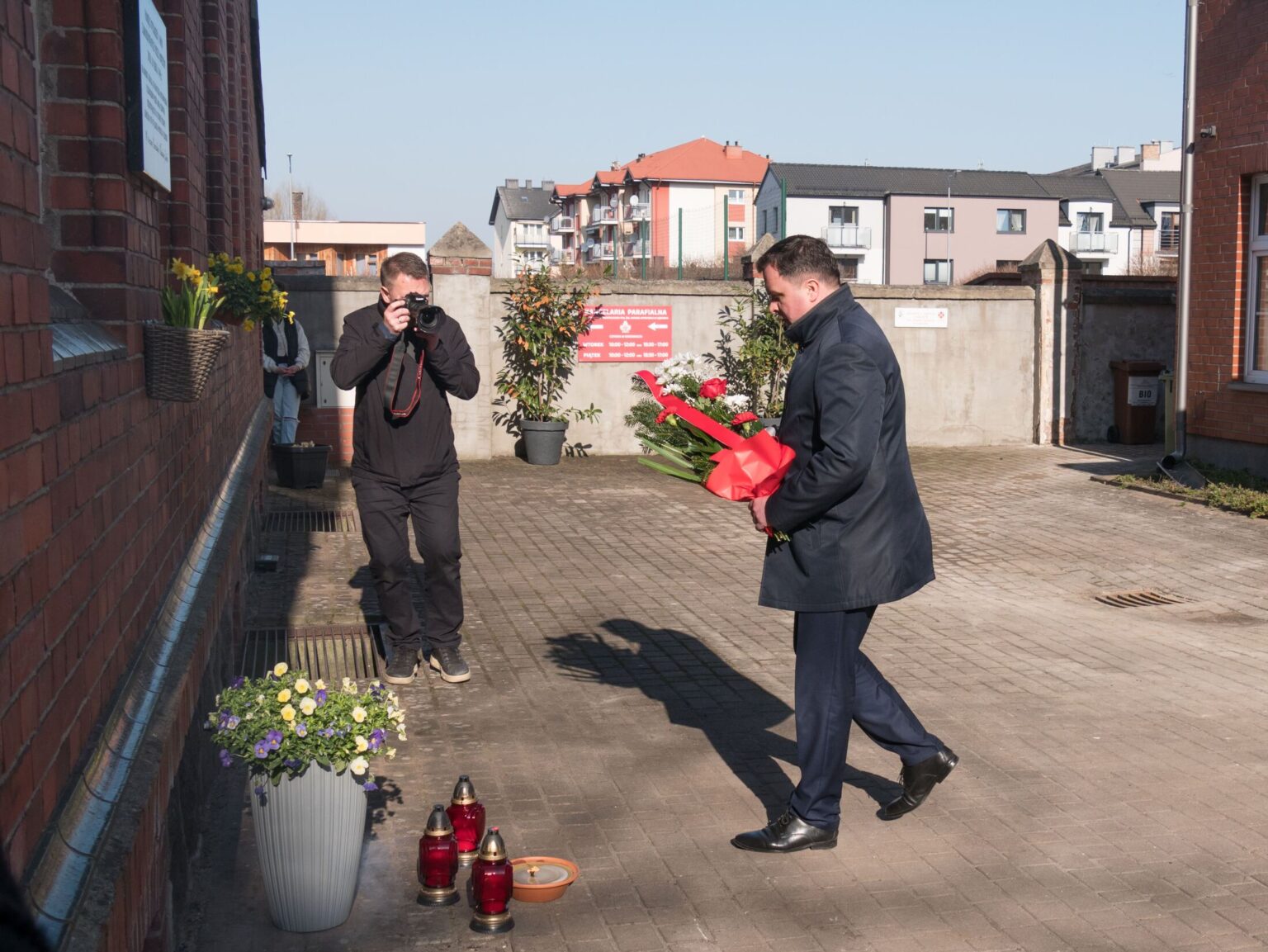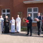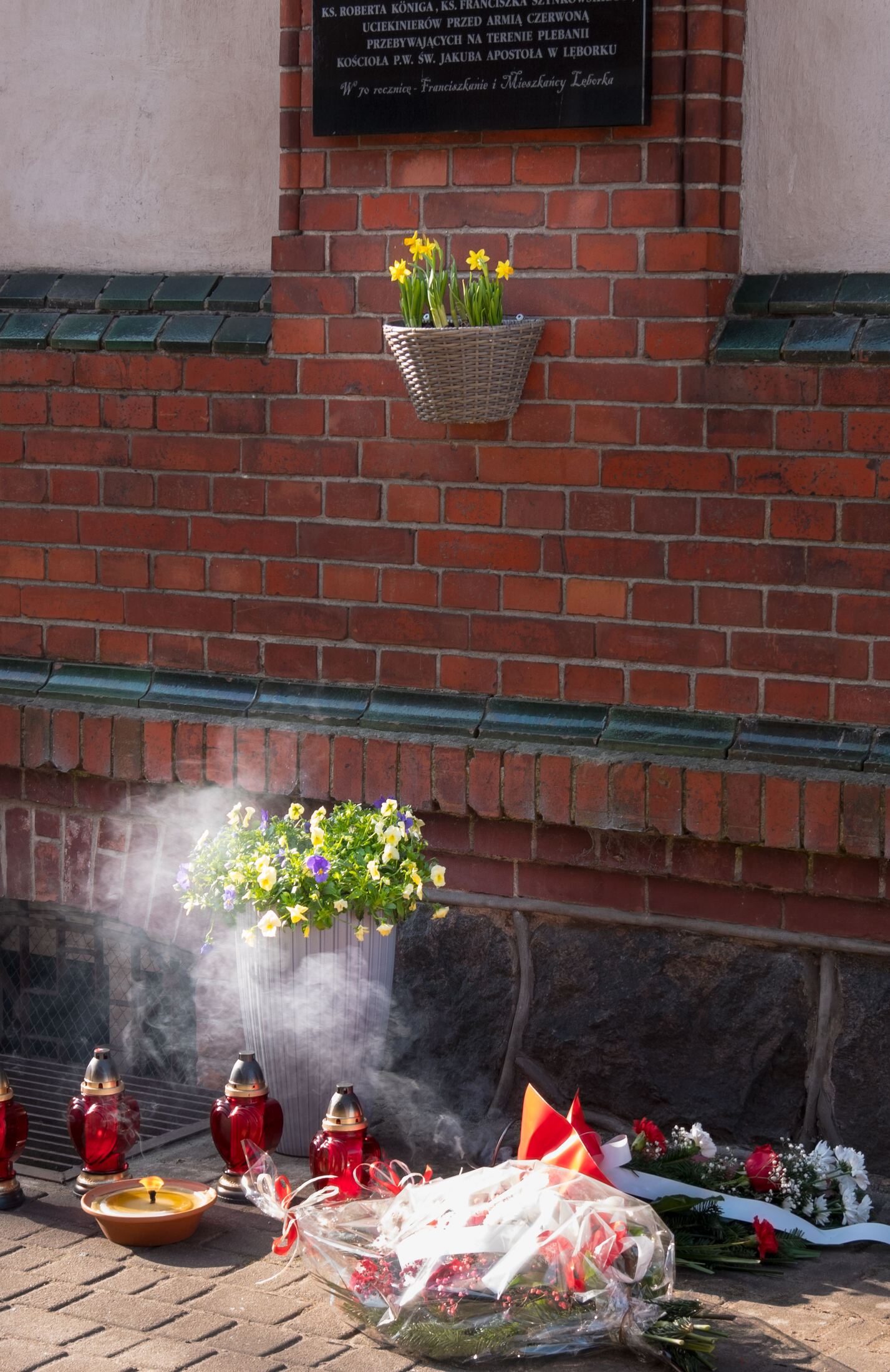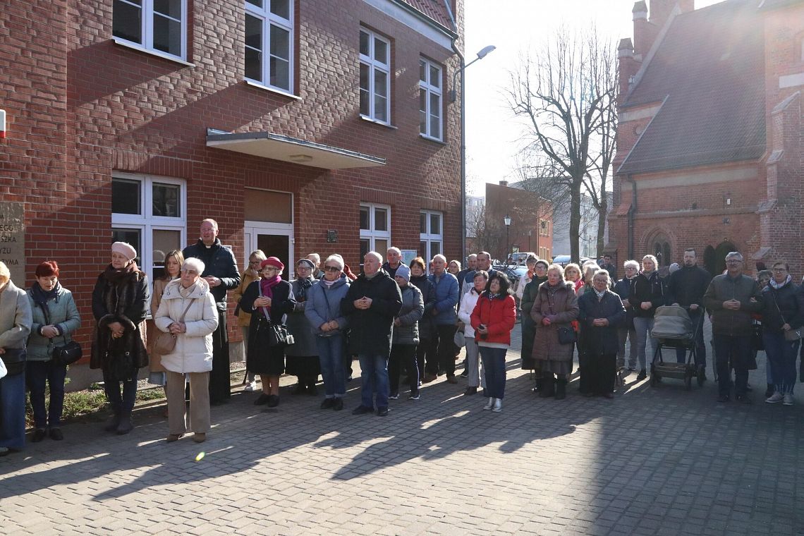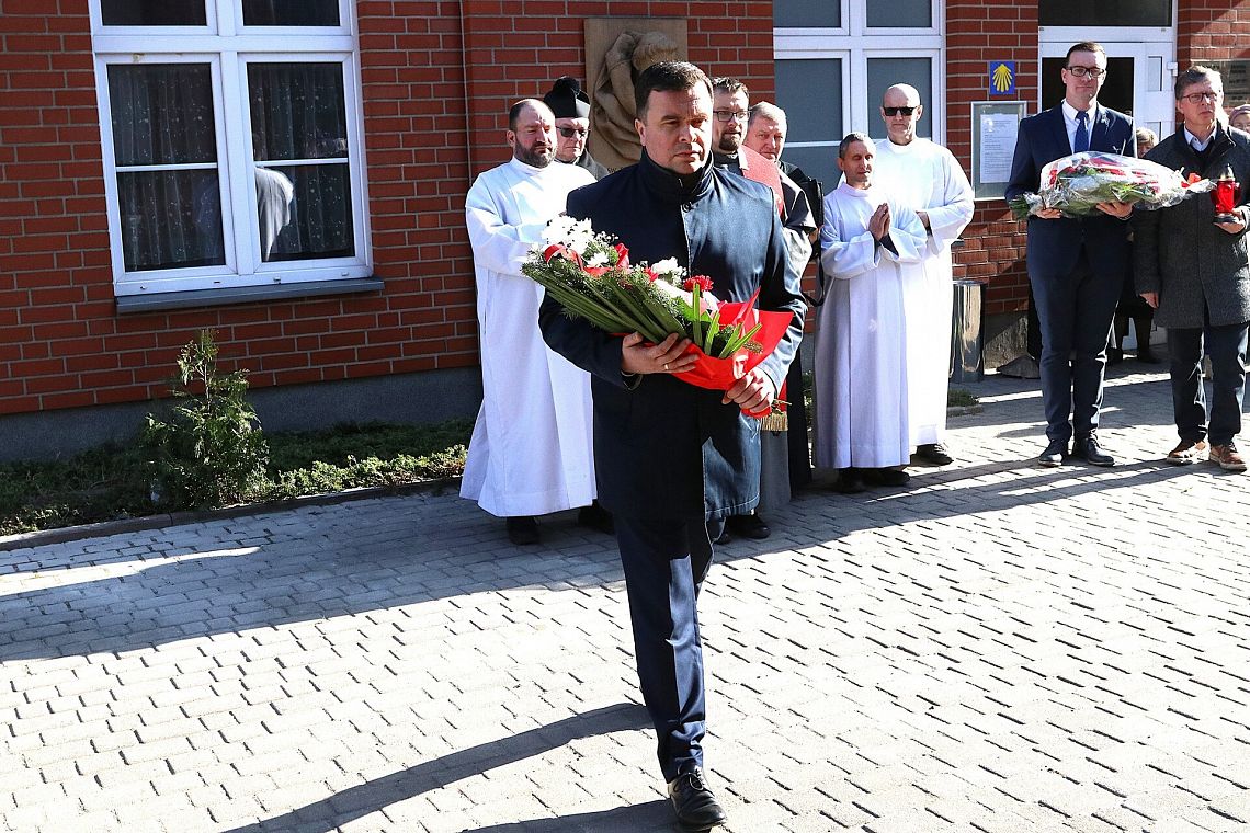 Po zakończeniu nabożeństwa uczestnicy uroczystości złożyli kwiaty oraz zapalili znicze pod tablicą pamiątkową wmurowaną w ścianę plebanii, ufundowaną w 70. rocznicę tamtych wydarzeń w 2015 roku. Widnieje na niej napis upamiętniający osoby zamordowane przez Sowietów 10 marca 1945 roku – ks. Roberta Königa, ks. Franciszka Szynkowskiego oraz uciekinierów przed Armią Czerwoną, którzy przebywali na terenie plebanii.