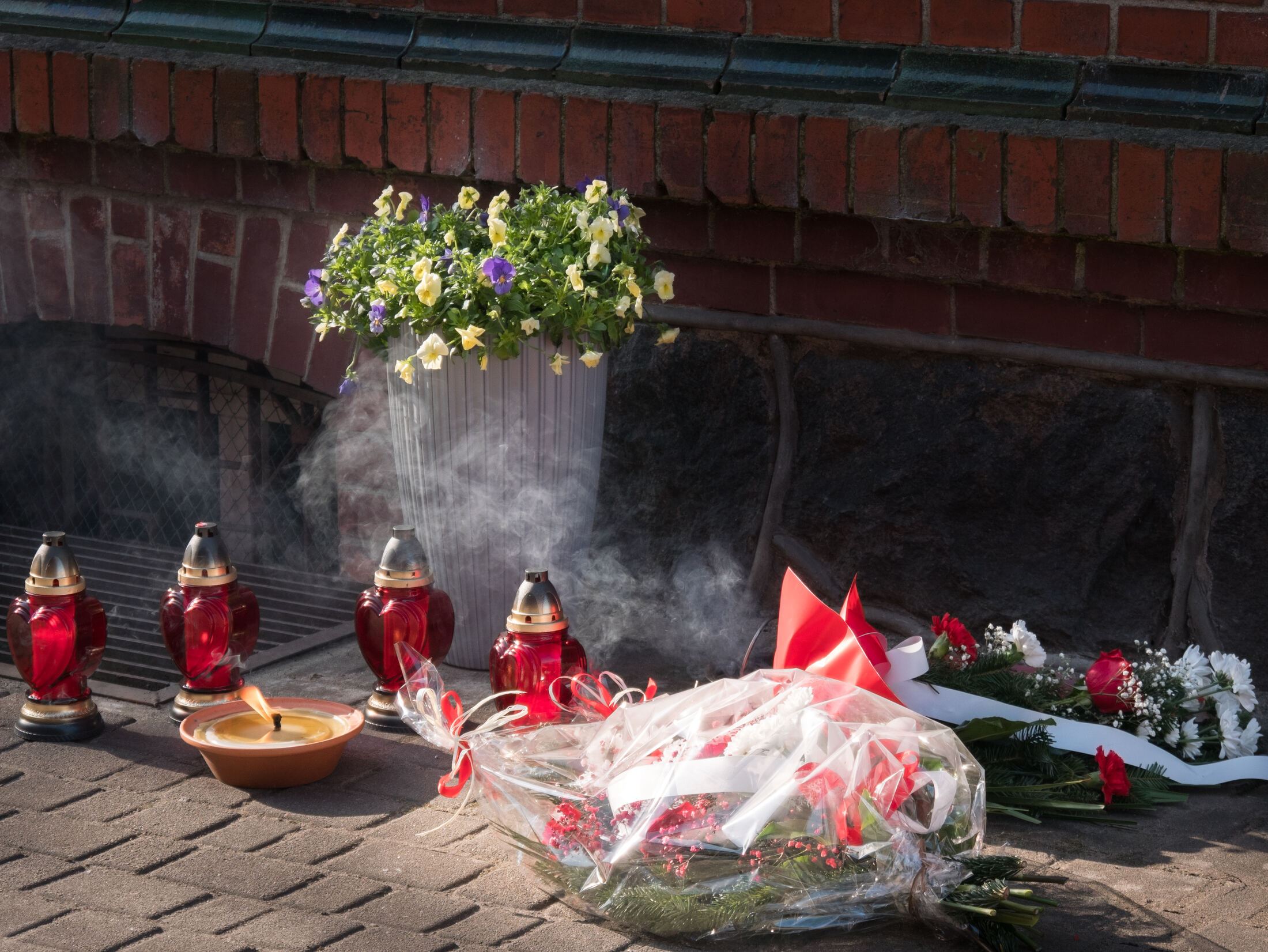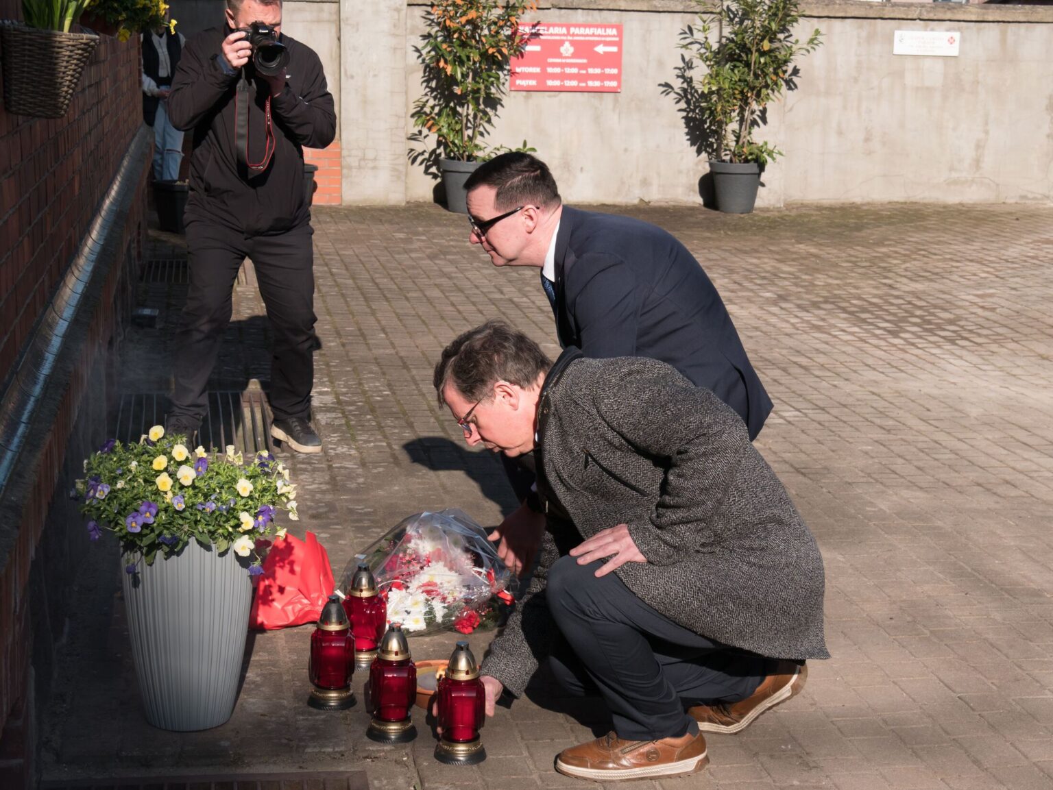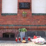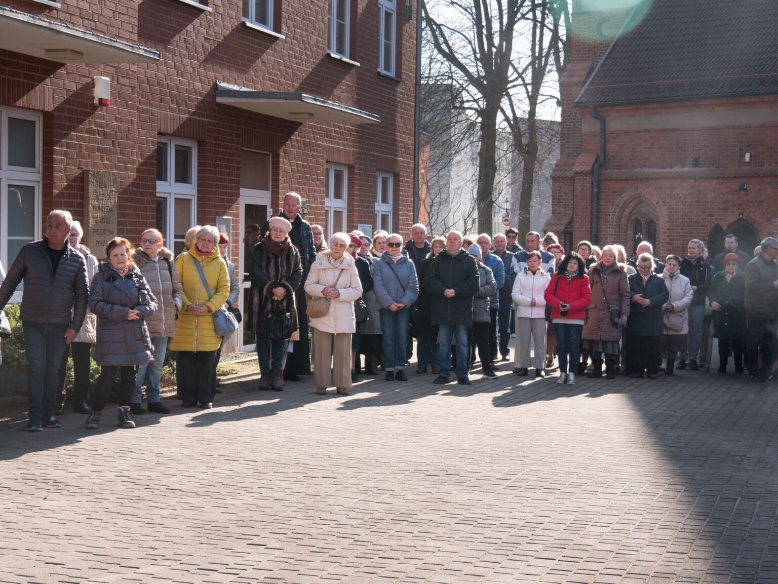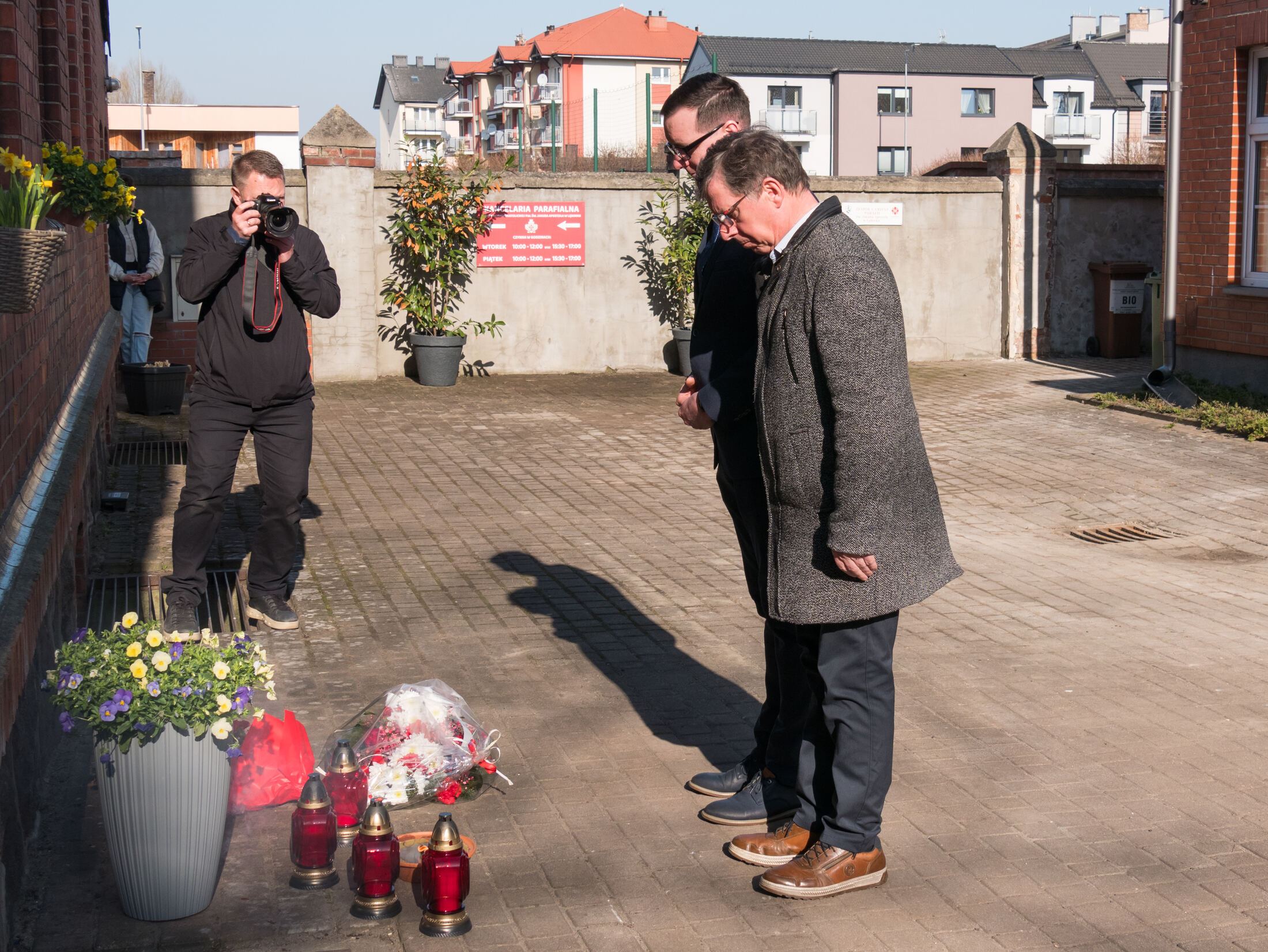 Po zakończeniu nabożeństwa uczestnicy uroczystości złożyli kwiaty oraz zapalili znicze pod tablicą pamiątkową wmurowaną w ścianę plebanii, ufundowaną w 70. rocznicę tamtych wydarzeń w 2015 roku. Widnieje na niej napis upamiętniający osoby zamordowane przez Sowietów 10 marca 1945 roku – ks. Roberta Königa, ks. Franciszka Szynkowskiego oraz uciekinierów przed Armią Czerwoną, którzy przebywali na terenie plebanii.