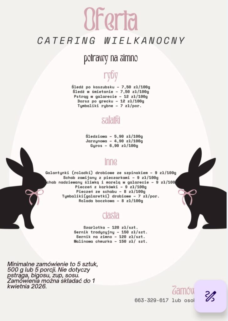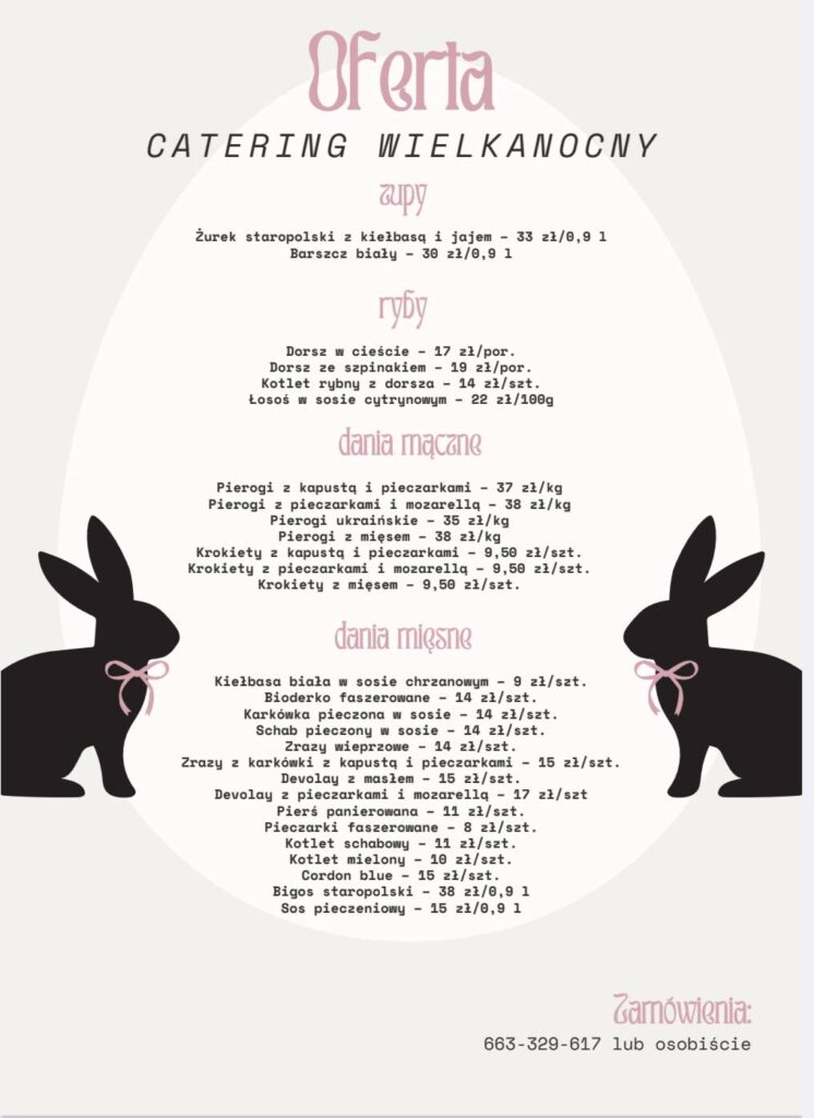 Przygotowania do Wielkanocy nie muszą oznaczać wielu godzin spędzonych w kuchni. Bistro Expres proponuje swoją tegoroczną ofertę cateringową, która pozwala na zakup potraw tradycyjnej kuchni polskiej. W menu znalazły się zarówno klasyczne zupy, jak i szeroki wybór dań mięsnych, rybnych oraz domowych wypieków.