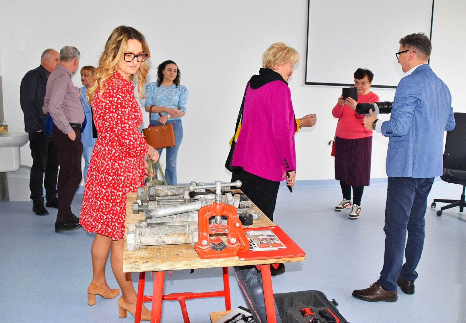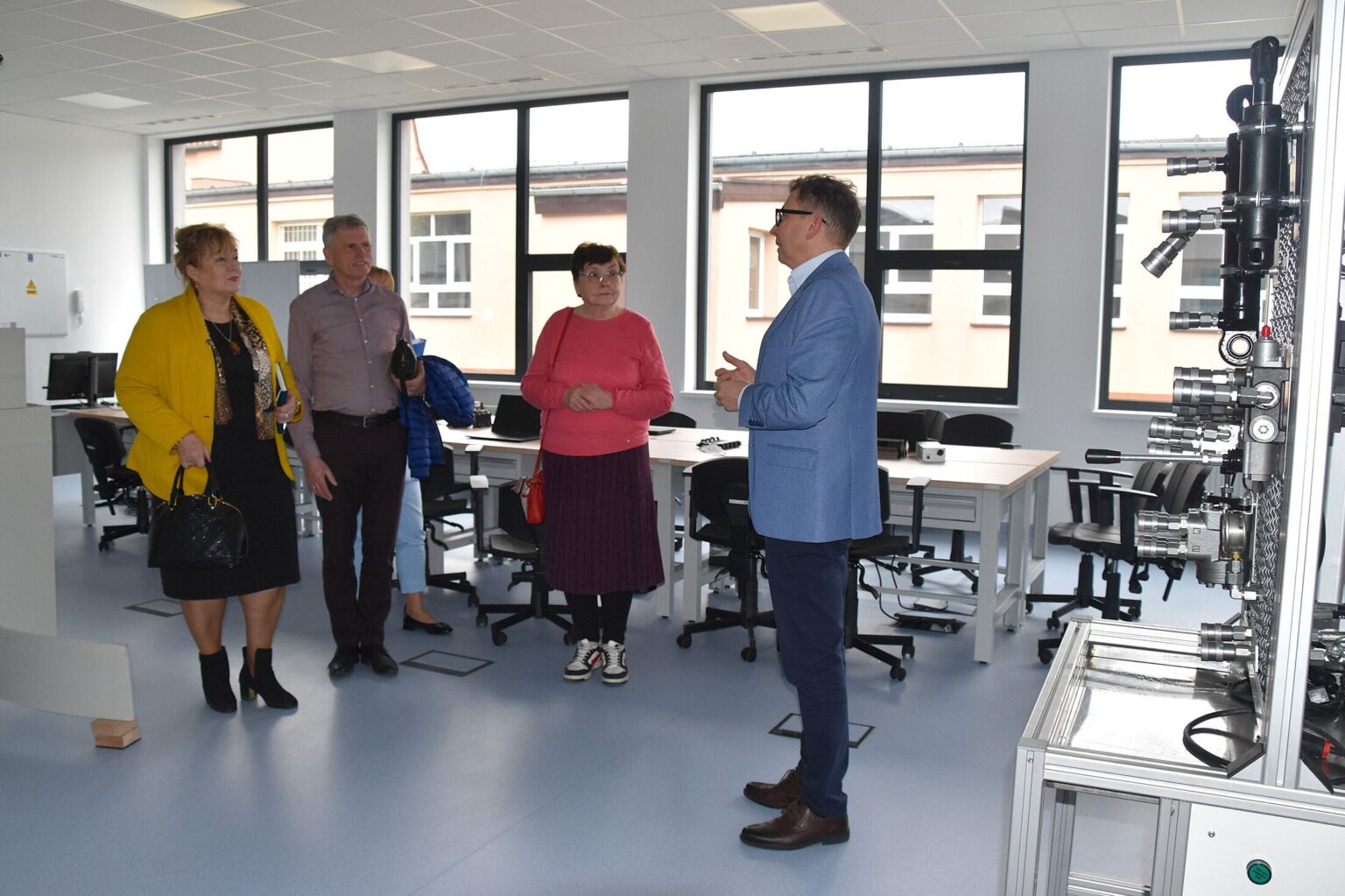 Po zakończeniu obrad dyrektor Artur Obolewski zaprosił chętnych uczestników Powiatowej Rady Oświatowej do zwiedzania Branżowego Centrum Umiejętności. Goście mieli okazję zobaczyć sale dydaktyczne oraz zaplecze, które na co dzień służy kształceniu młodzieży.