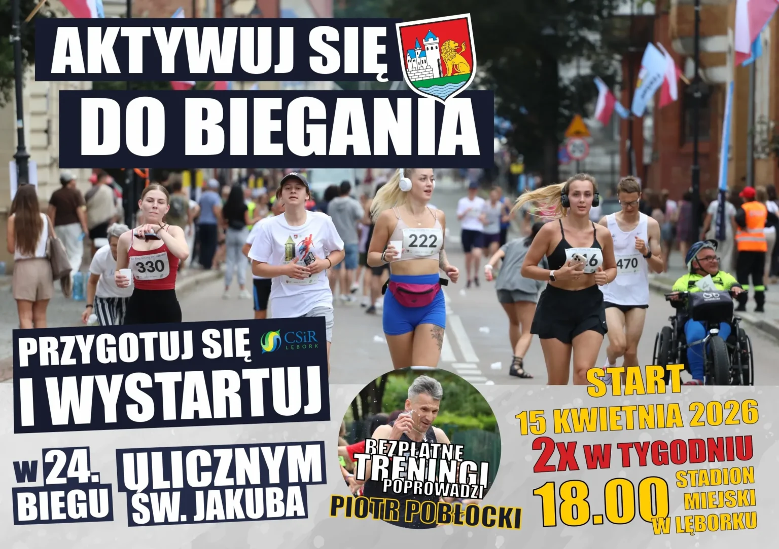 25 lipca w Lęborku odbędzie się Uliczny Bieg św. Jakuba – największa impreza biegowa w mieście i główne wydarzenie sportowe Jarmarku św. Jakuba. Tymczasem Centrum Sportu i Rekreacji zaprasza do wzięcia udziału w bezpłatnych treningach z utytułowanym biegaczem Piotrem Pobłockim w ramach akcji „Aktywuj się do biegania”. Pierwsze zajęcia odbędą się już w środę, 15 kwietnia, o godz. 18:00 na stadionie przy ul. Kusocińskiego. Kolejne spotkania zaplanowano dwa razy w tygodniu.