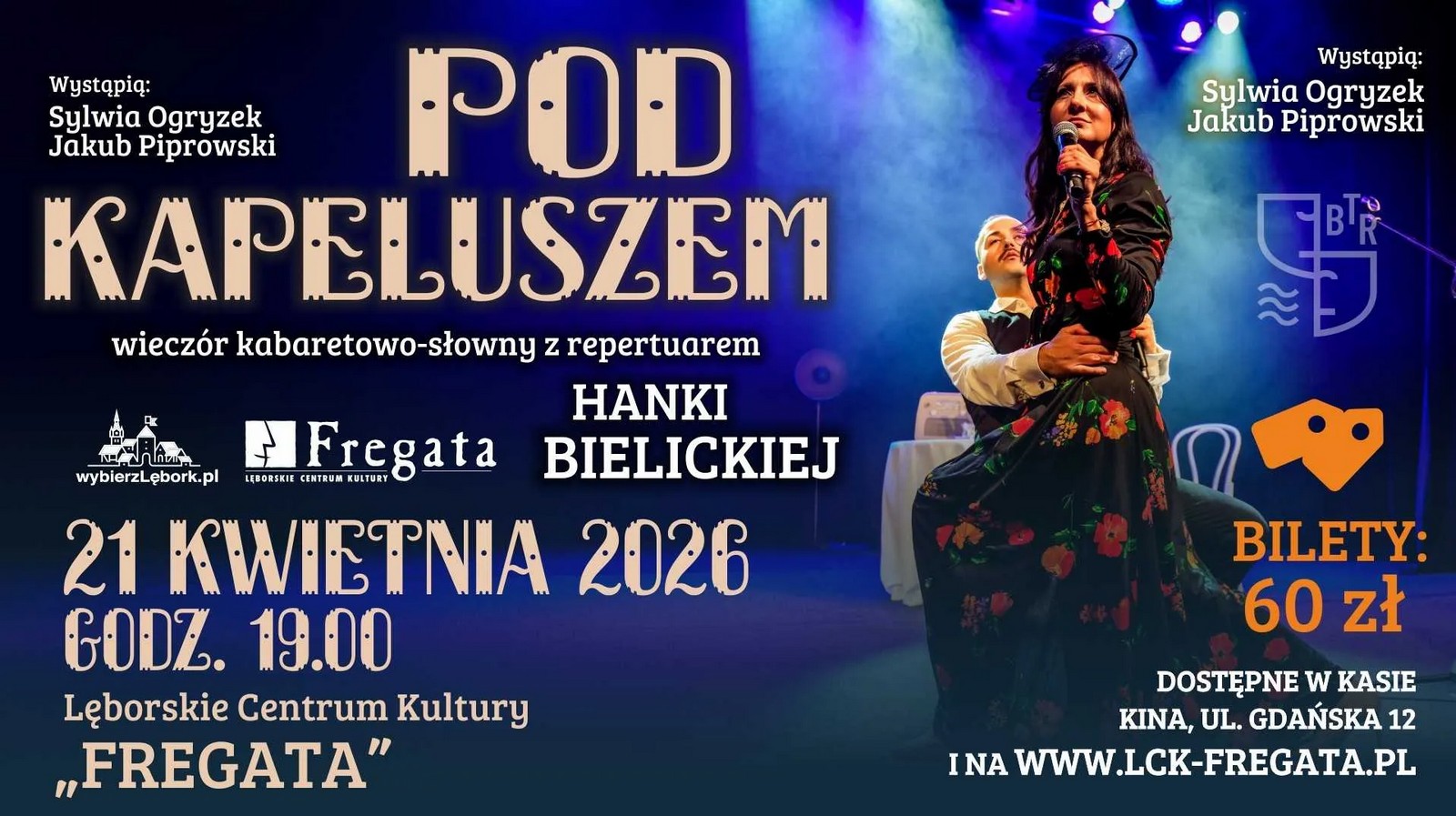 Będzie to wieczór, w którym słowo błyszczy, a pointy trafiają w punkt. Lęborskie Centrum Kultury Fregata zaprasza na spektakl kabaretowo – słowny inspirowany twórczością niezapomnianej Hanki Bielickiej. „Pod kapeluszem” to spotkanie z humorem najwyższej próby – inteligentnym, odważnym i z przymrużeniem oka.