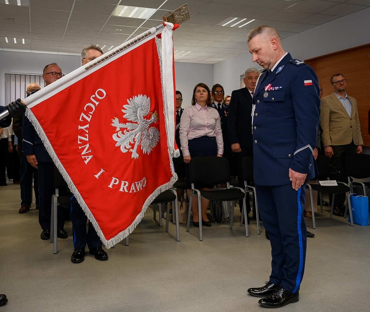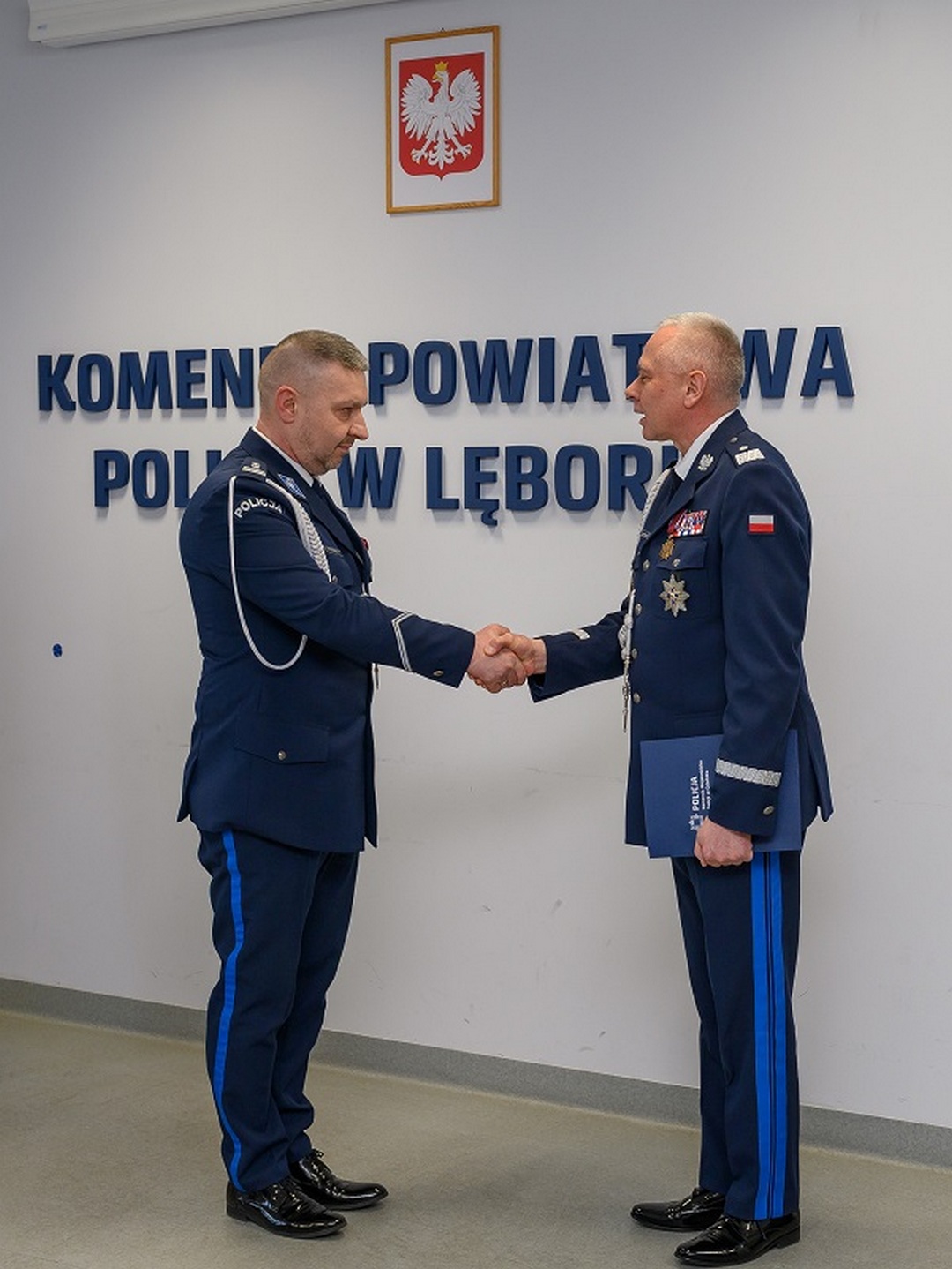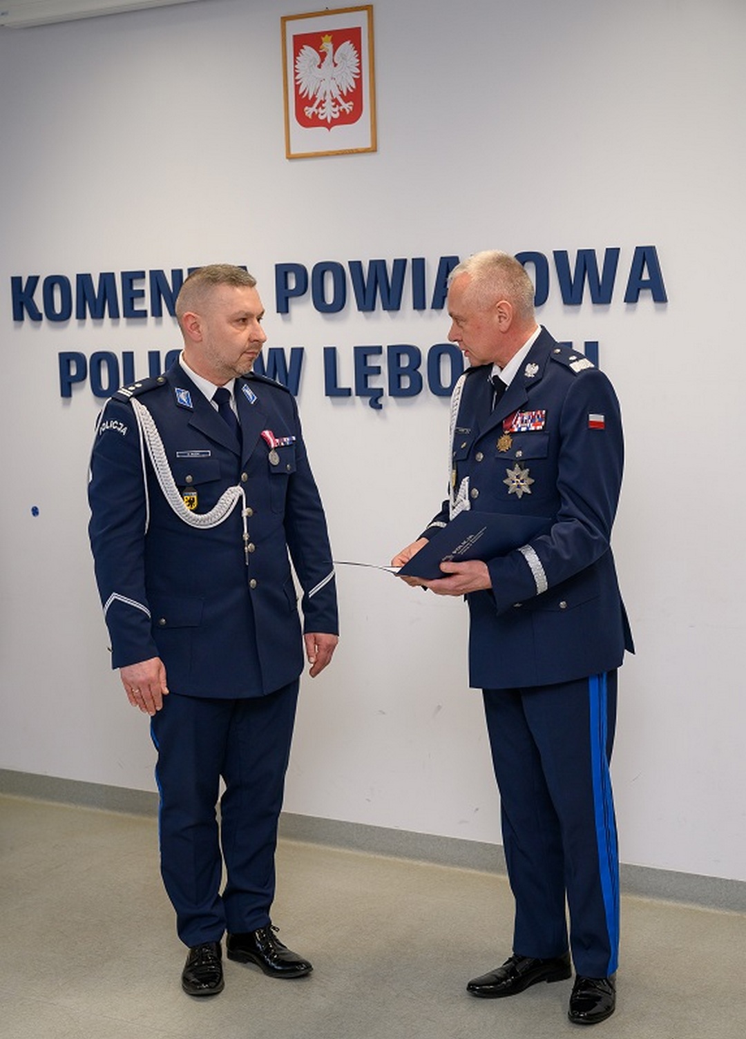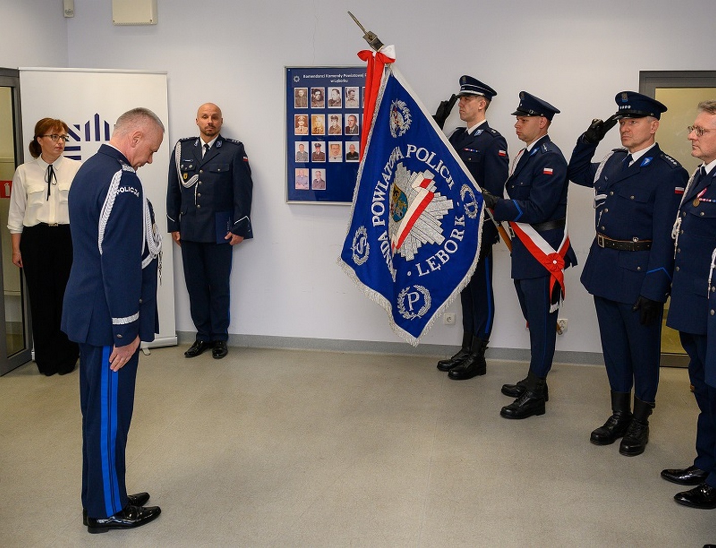 Podczas uroczystości odczytano rozkaz personalny o powołaniu mł. insp. Arkadiusza Guzka na stanowisko komendanta powiatowego policji w Lęborku. Nowy komendant złożył meldunek o objęciu stanowiska nadinsp. Bogusławowi Ziembie, komendantowi wojewódzkiemu policji w Gdańsku.