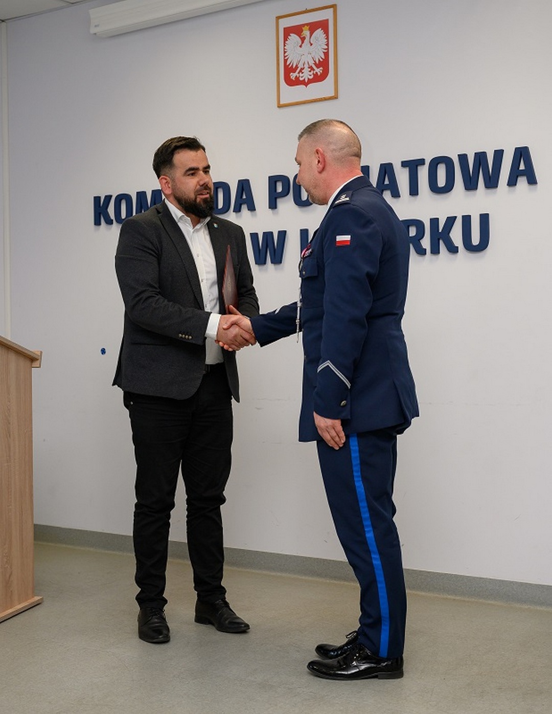 Głos w imieniu przedstawicieli władz samorządowych zabrali również starosta powiatu lęborskiego Tomasz Litwin oraz burmistrz Lęborka Jarosław Litwin, składając szefowi lęborskich policjantów gratulacje i życząc przy tym pomyślności na objętym stanowisku.