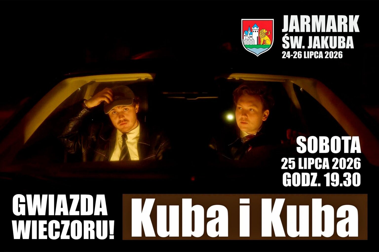 Scena wypełni się świeżym brzmieniem, młodą energią i radiowymi hitami duetu Kuba i Kuba, który przebojem zaznaczyli swoją obecność na polskiej scenie muzycznej. To kolejna muzyczna niespodzianka tegorocznego Jarmarku św. Jakuba w Lęborku.
