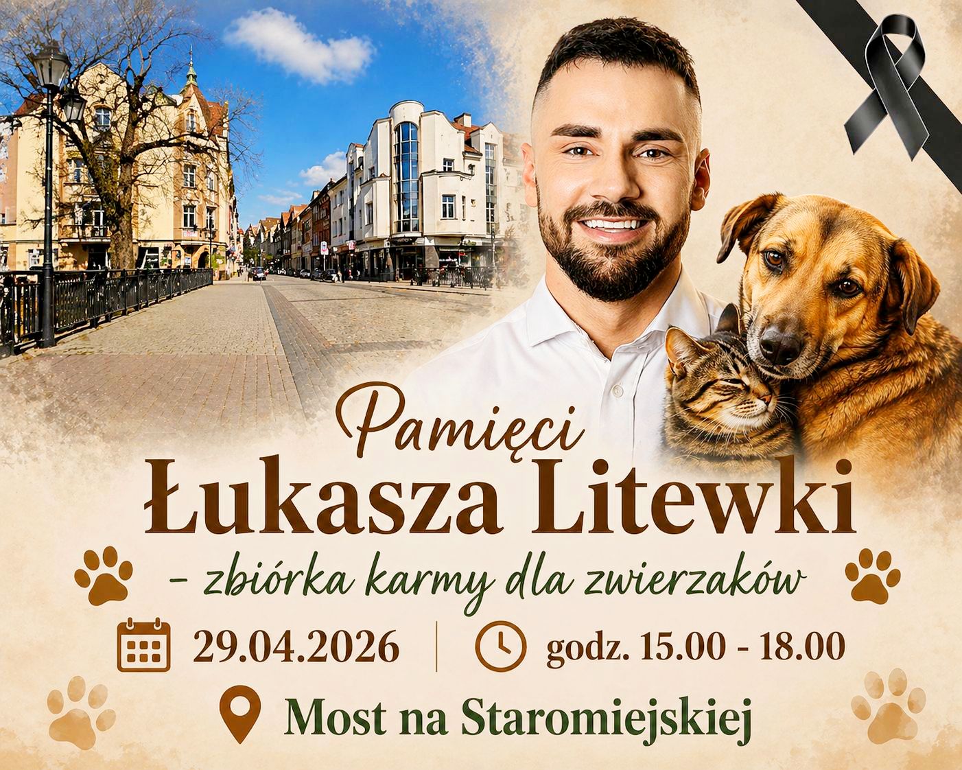 Radny Rady Miejskiej w Lęborku Patryk Bianga organizuje zbiórkę karmy da zwierząt. Akcja odbędzie się w środę, 29 kwietnia, w godzinach od 15:00 do 18:00 na moście na ul. Staromiejskiej i ma być wyrazem hołdu pamięci dla tragicznie zmarłego posła na Sejm RP Łukasza Litewki.