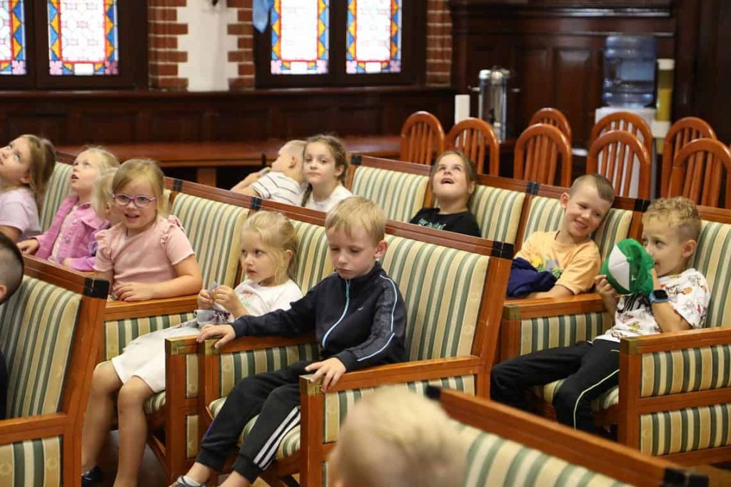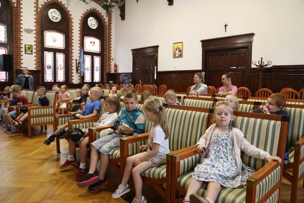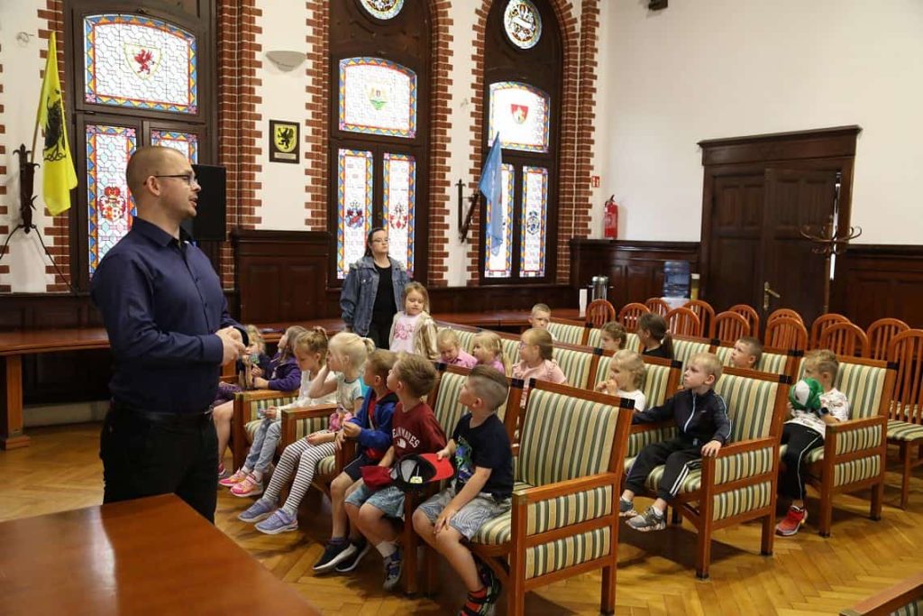 Grupa około 30 dzieci z Przedszkola u Majki odwiedziła Urząd Miejski w Lęborku, gdzie miała możliwość spotkać się z burmistrzem miasta Jarosławem Litwinem. Odbyło się też zwiedzenie gabinetu burmistrza oraz Sali Rajców.