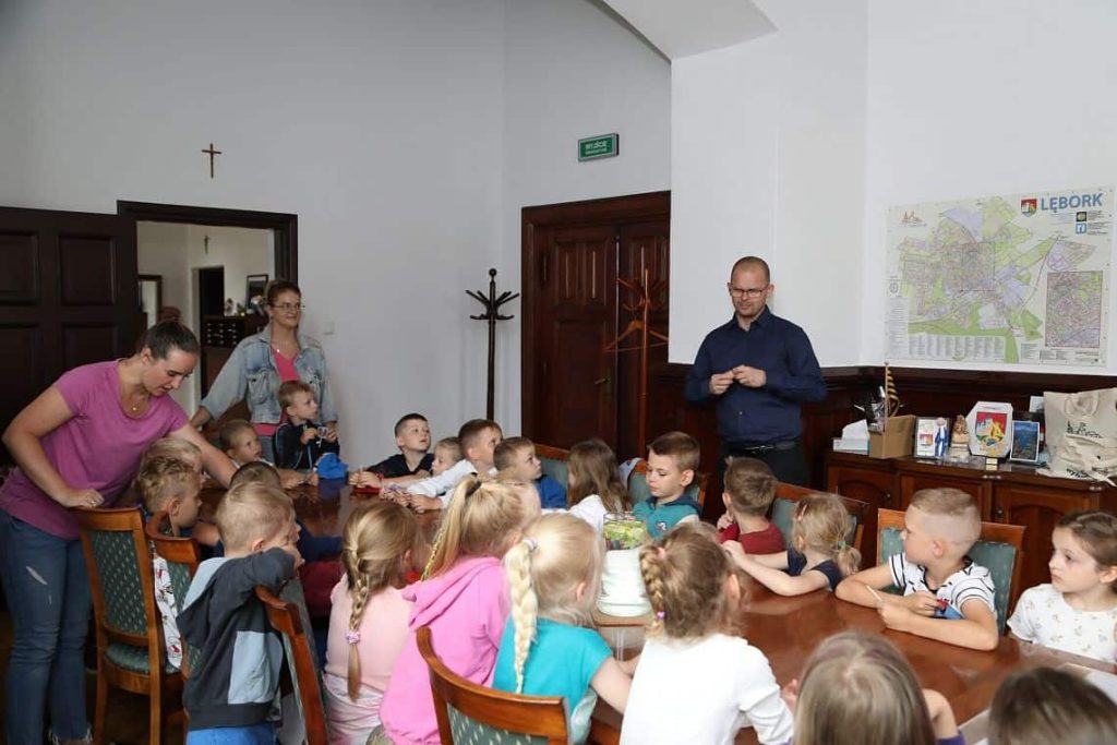 Wizyta zakończyła się serdecznymi podziękowaniami dzieci dla burmistrza za miłe przyjęcie i ciepłą atmosferę. Spotkanie było okazją do zapoznania najmłodszych mieszkańców Lęborka z funkcjonowaniem Urzędu Miejskiego oraz pracą burmistrza.