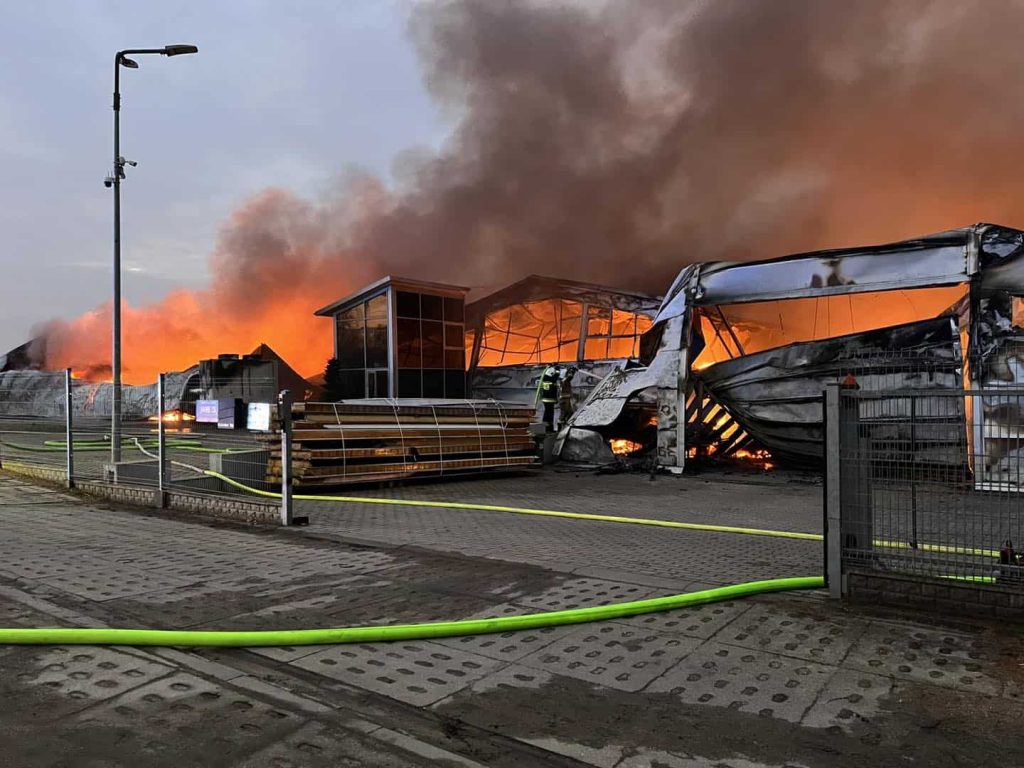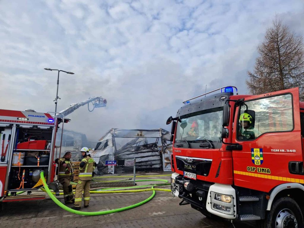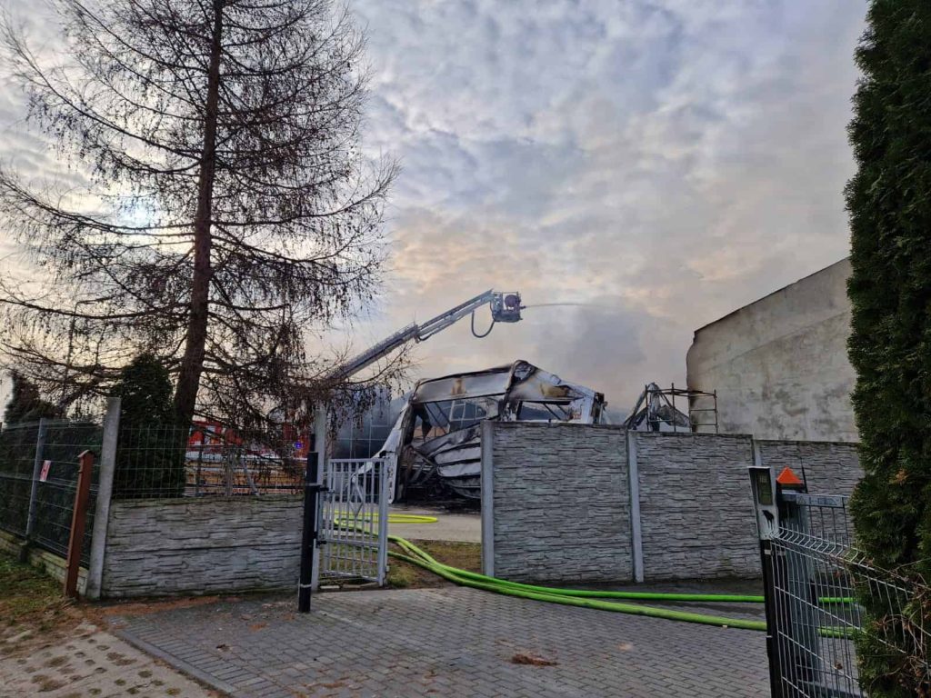 – Przyjmujemy wstępnie, że akcja gaśnicza może potrwać jeszcze 8-10 godzin – mówi st. kpt. Marcin Elwart. – Sytuacja jest jednak dynamiczna, więc trudno nam to dokładnie oszacować. W tej chwili gasimy te cztery hale, podajemy wodę w natarciu, próbujemy je okrążyć, ale nie wiadomo czy nam się to uda. Zobaczymy czy siły i środki będące na miejscu nam na to pozwolą. Hale, które pod wpływem temperatury się zawaliły trzeba będzie jeszcze rozebrać i dogasić.