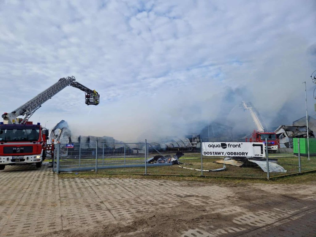 Trwa akcja gaśnicza ogromnego pożaru hal produkcyjnych firmy Aquafront w Kaninie w gminie Nowa Wieś Lęborska. Z ogniem walczy około 100 strażaków z ponad 30 zastępów straży pożarnej. Nie ma informacji o osobach poszkodowanych.