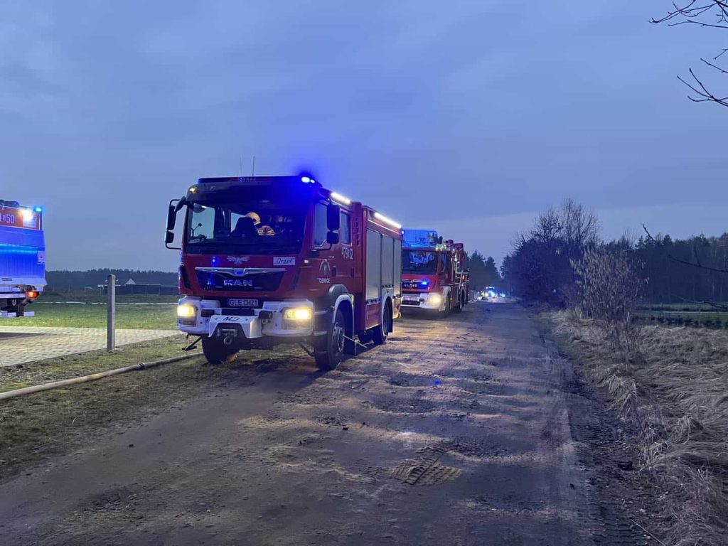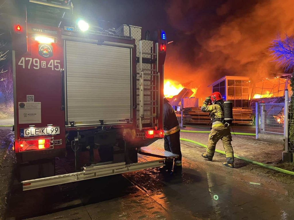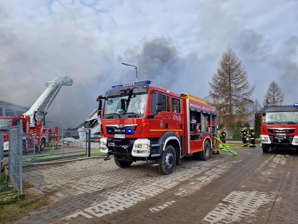 – Zgłoszenie o pożarze wpłynęło około godziny 4 nad ranem – mówi st. kpt. Marcin Elwart, oficer prasowy KP PSP w Lęborku. – Na miejsce w pierwszej kolejności zadysponowano siły i środki z terenu powiatu lęborskiego. Po dojeździe pierwszych zastępów okazało się, że pożarem objęte były dwie hale produkcyjno-magazynowe, natomiast teraz ogień się rozprzestrzenił na łącznie cztery hale. W pierwszej fazie skupiliśmy się m.in. na tym, aby uratować stojący obok budynek mieszkalny, co nam się udało, jak również wszystkie pozostałe budynki znajdujące się wokół palących się hal. Były też niewielkie zbiorniki z paliwem, ale to też udało nam się uratować.