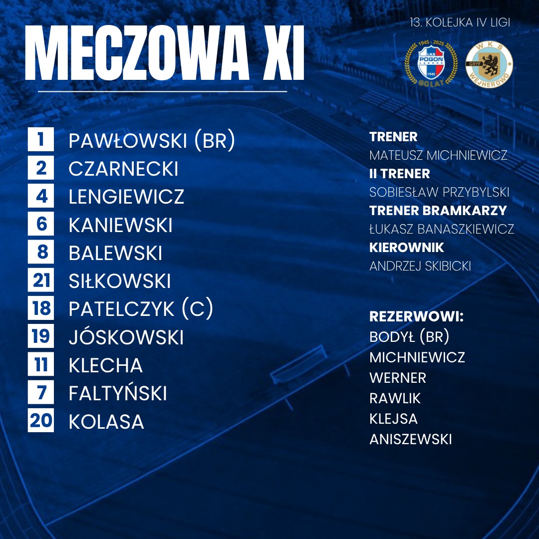 Pogoń: Pawłowski – Czarnecki, Lengiewicz, Kaniewski, Balewski, Siłkowski, Patelczyk, Jóskowski (’71 Klejsa), Klecha, Faltyński, Kolasa