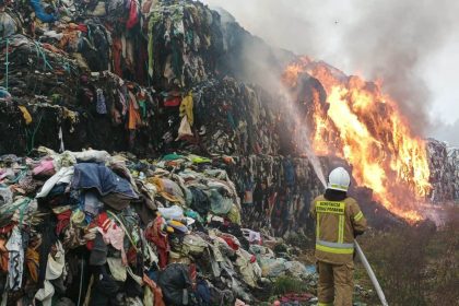 Na składowisku odpadów w Kamieńcu (gm. Cewice), nad jedną z pryzm znów…