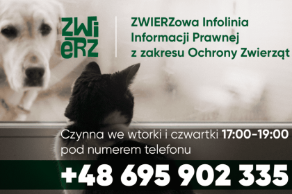 Fundacja „Zwierz” prowadzi ZWIERZową Infolinię Bezpłatnej Informacji Prawnej z Zakresu Ochrony Zwierząt. Infolinia…