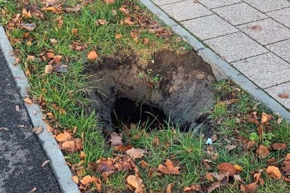 Dziura w ziemi, niczym „dziura w moście”, ale zagrożenie ogromne [ZDJĘCIA]