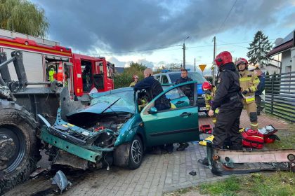 Uciekający Ford Focus zderzył się z koparko-ładowarką na ul. Lotników [ZDJĘCIA]