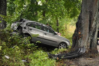 Osobówka wypadła z drogi i uderzyła w drzewo