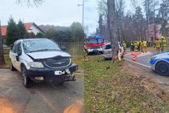 Chrysler uderzył w drzewo i dachował. Znowu groźnie na drogach regionu