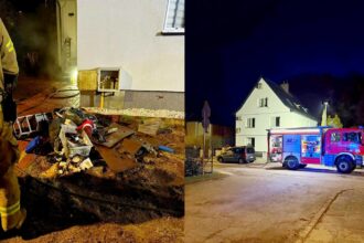 Pożar w piwnicy budynku przy ul. 8 Maja w Lęborku. Wezwano strażaków