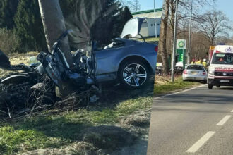Niebezpiecznie na DW214 w Garczegorzu. Kierowca BMW uderzył w drzewo