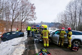 Czołowe zderzenie dwóch aut w gminie Główczyce. Kobieta zabrana śmigłowcem LPR do szpitala