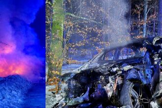 Mercedes w ogniu. Auto doszczętnie spłonęło za Pogorzelicami [ZDJĘCIA]