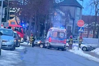 Groźne zderzenie trzech pojazdów na skrzyżowaniu w centrum Lęborka. Są utrudnienia w ruchu