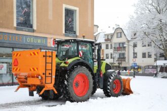 Akcja „Zima” w Lęborku. Drogowcy walczą ze skutkami śnieżycy [ZDJĘCIA]