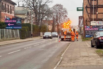 Na ul. Kossaka w Lęborku trwają prace drogowe przy studzienkach kanalizacyjnych. Częściowo…
