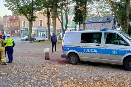 Policyjny radiowóz wjechał w słup znajdujący się na placu Pokoju w Lęborku.…