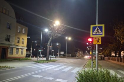 Sygnalizacja świetlna na skrzyżowaniu Alei Wolności oraz Placu Pokoju w Lęborku stwarza…