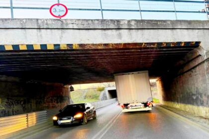 Kierowcy pojazdów ciężarowych muszą zachować szczególną uwagę podczas przejeżdżania pod wiaduktami kolejowymi…
