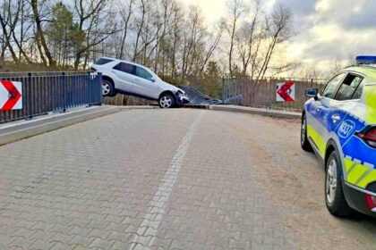Pomorskie: Mercedes uderzył w barierki mostu i prawie wpadł do rzeki