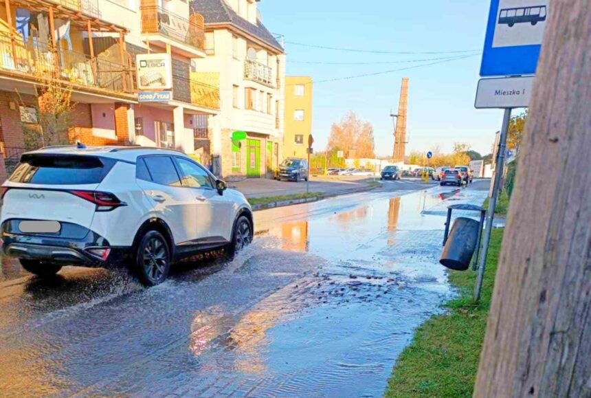 Woda zalała ulicę Mieszka I w Lęborku. Doszło do awarii