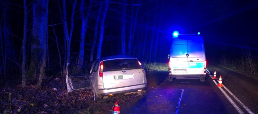 Uderzył autem w drzewo i uciekł. Niebezpiecznie między Kisewem a Kębłowem Nowowiejskim