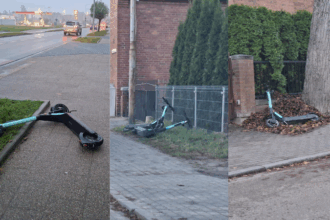 Hulajnogi pozostawiane gdzie popadnie – chaos na chodnikach i trawnikach w Lęborku